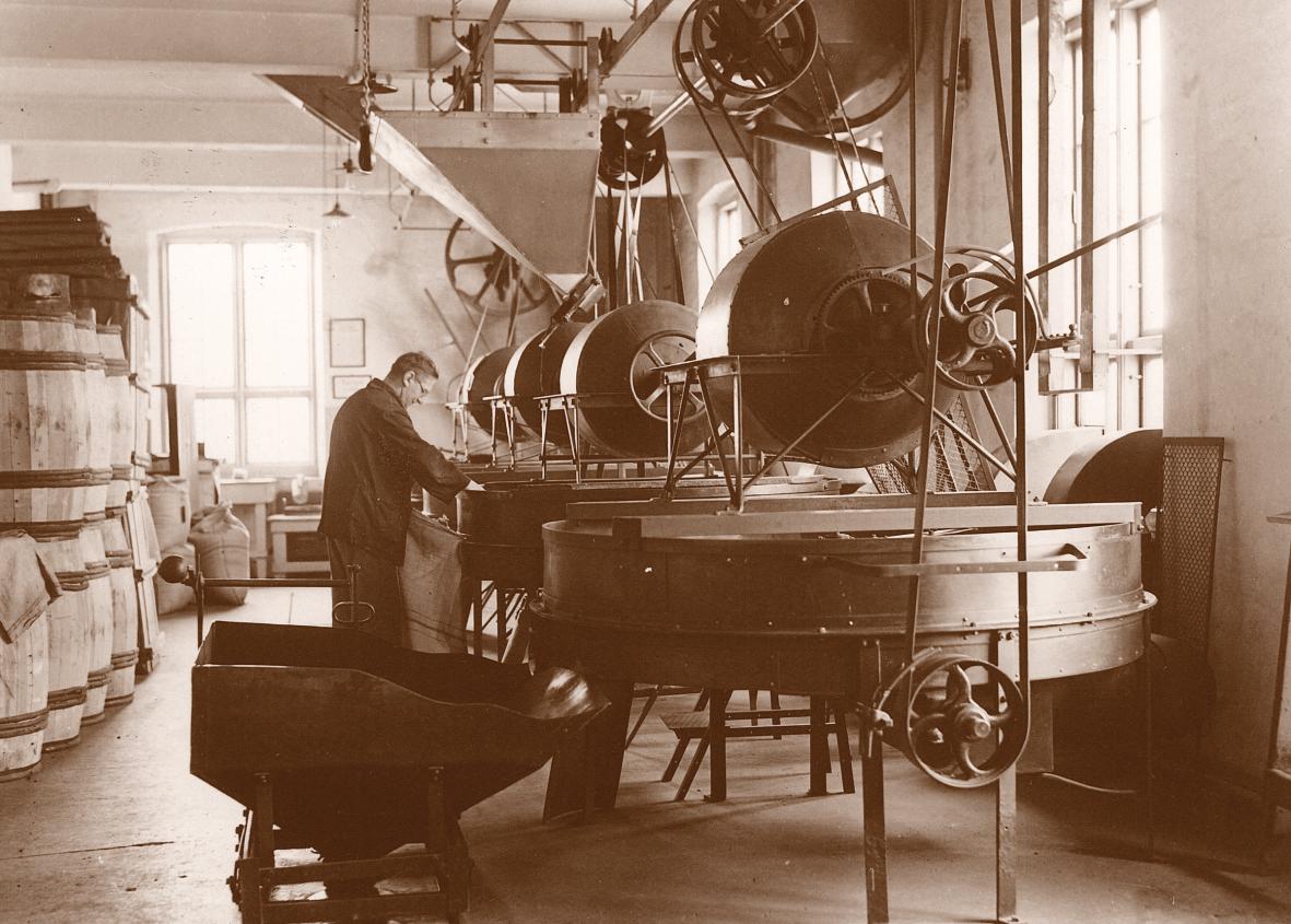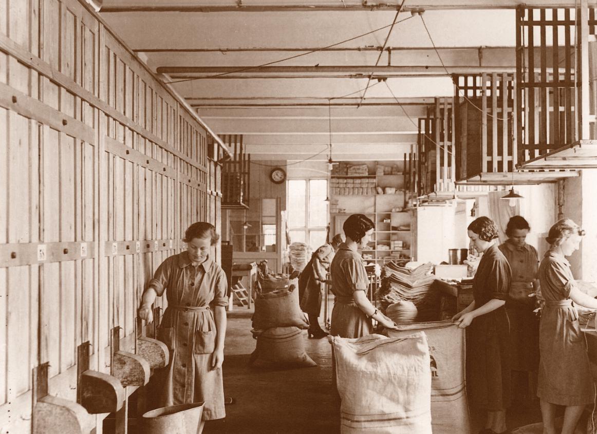 Maskinerne blev drevet af damp og kaffen blev ristet i en jerntromle over kul-ild. Når man skulle dæmpe varmen, blev en jernplade lagt over kullene.