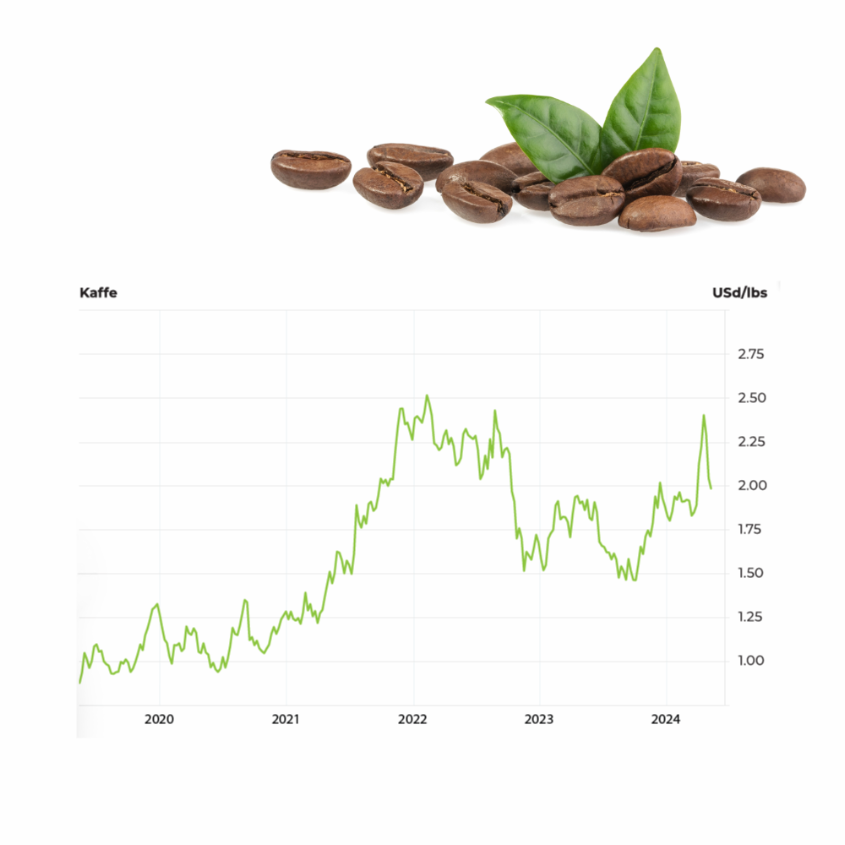 Vi lægger op til et partnerskab med månedlige priser, der følger udviklingen på kaffebørsen og US Dollar. Dette giver den mest ærlige pris.